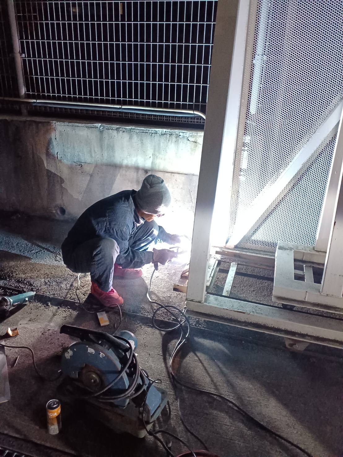 車両駐車場の入口門を修理して頂いております。